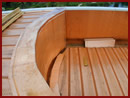 • Una banchina in legno, da noi fornita, viene inserita nella muratura per 16 cm. sporgendo per 12 cm. Incastrata e legata negli angoli, sostituisce la correa in c.a.